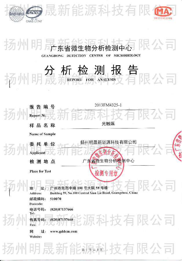 明晟光觸媒可以降解甲醛、苯、甲苯、二甲苯、TVOC等污染物;具有抗菌防霉功能。